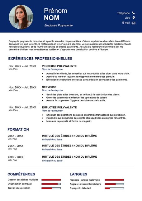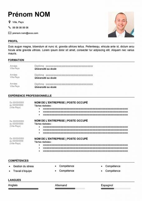 Choisissez parmi +200 modèles de CV gratuits à télécharger en Word, PDF et Google Docs. Gagnez du temps avec nos exemples professionnels prêts à remplir. Simple, rapide et efficace.