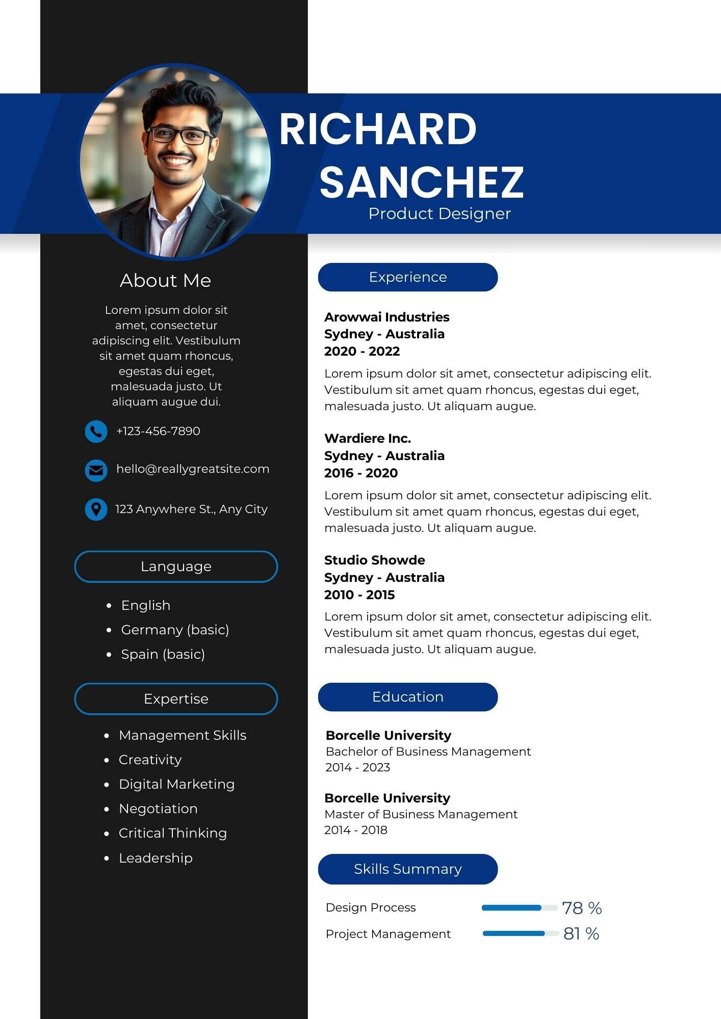 If you don’t like this CV example, feel free to choose another one on our website. Download your favorite template now and create your own CV!